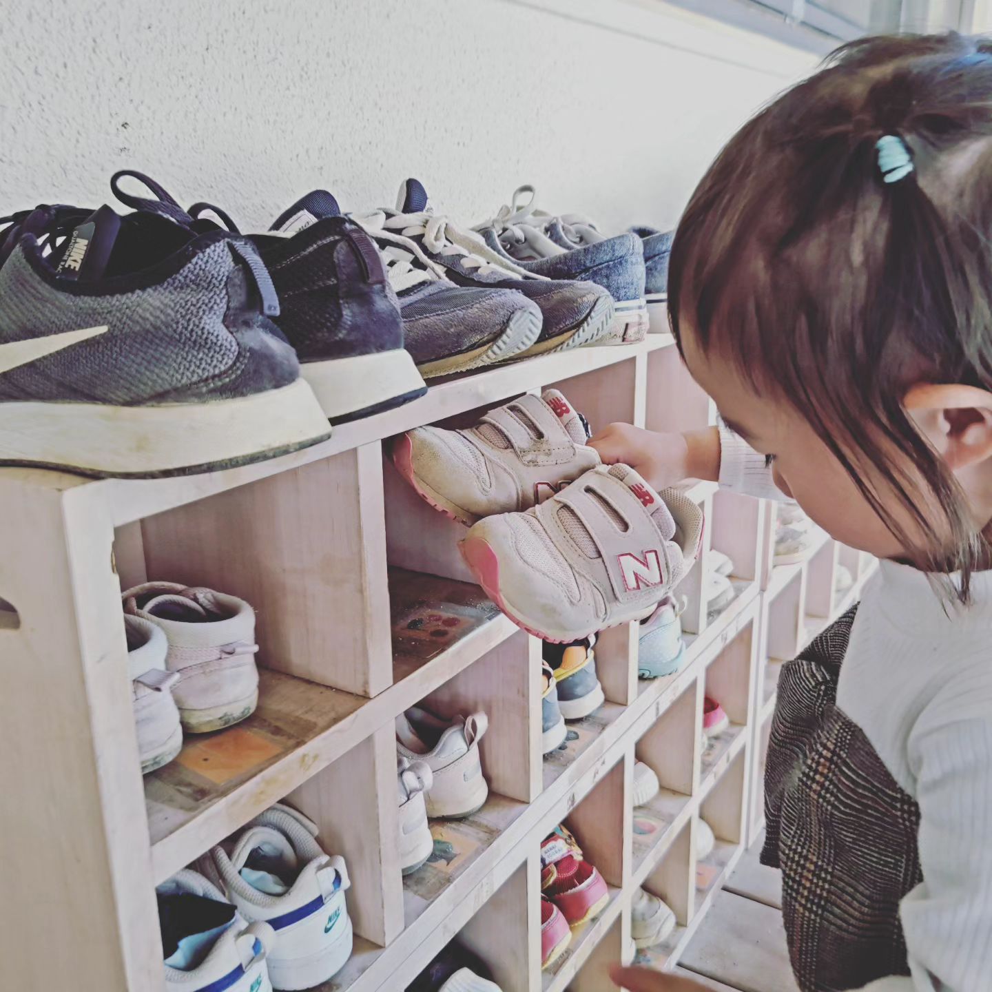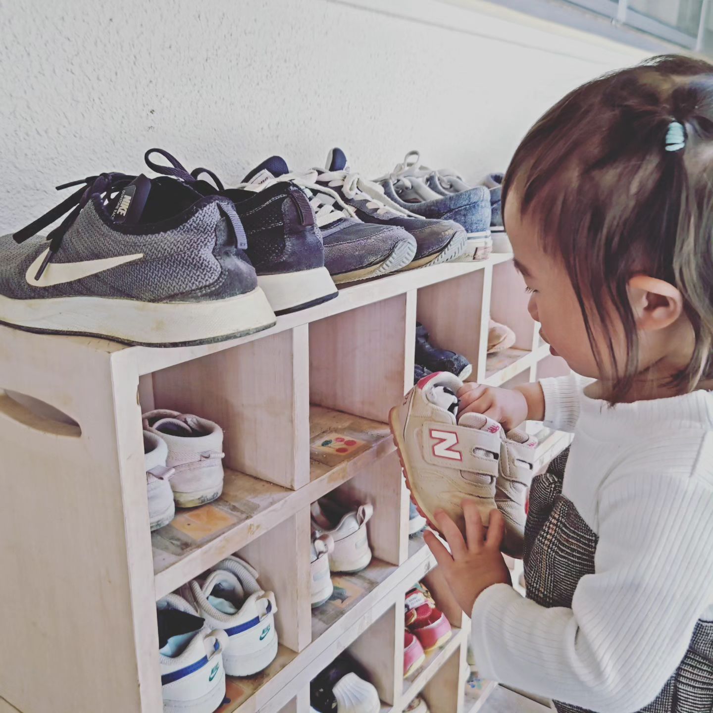 みんなが、お部屋に入った後もウッドデッキにいる2歳児さん。