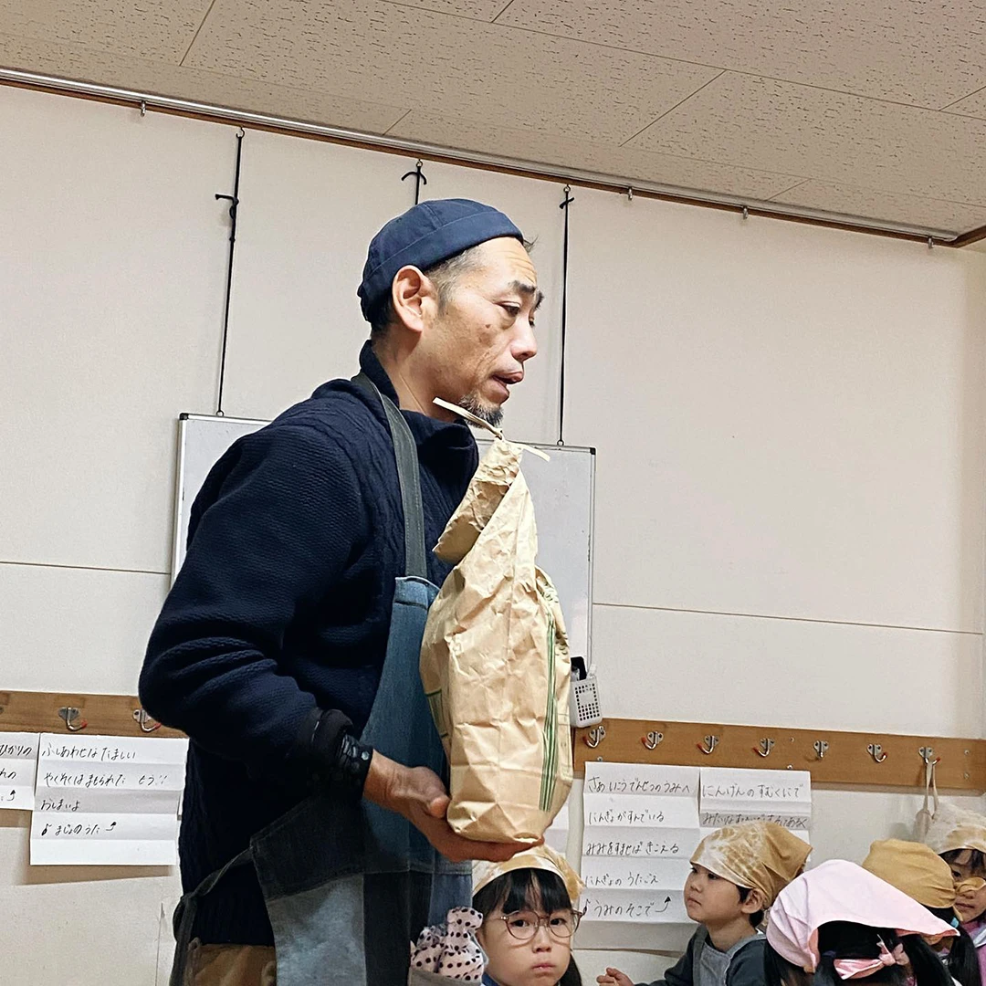 昨年の年長さから譲られた籾。お米になって、また次の年長さんへ。