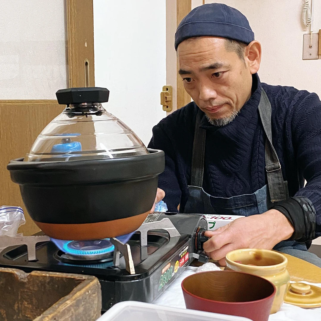 不思議な形のお鍋でご飯を炊き、美味しいおにぎりの作り方をなかぼうさんに教えていただきました❤️