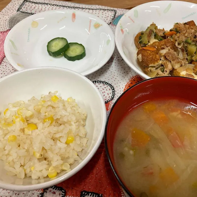 わくわく農園から新鮮な、とうもろこしが届いたので急遽、給食にとうもろこしごはん🌽
