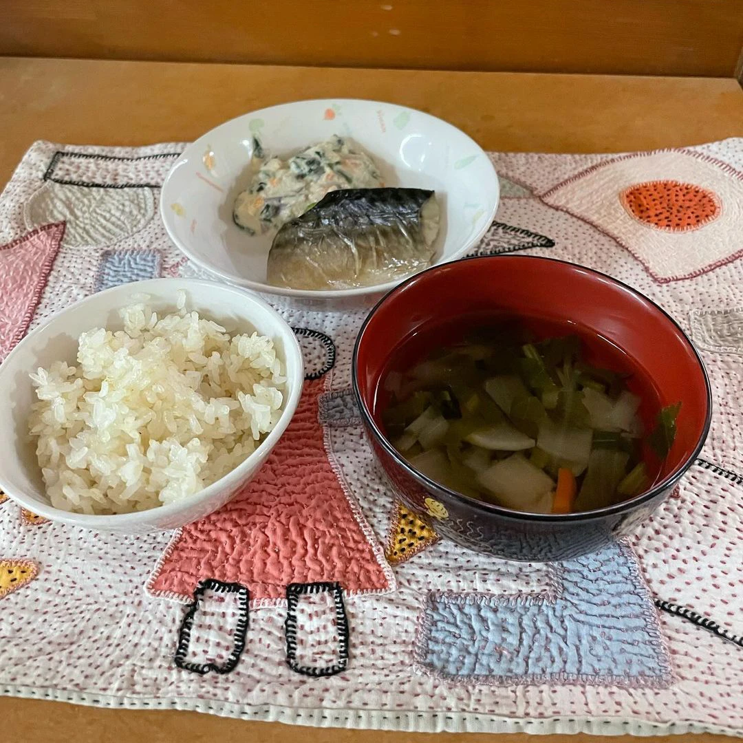 メニューは、鯖の塩焼き、ほうれん草の白和え、かぶのすまし汁です。