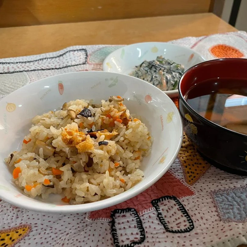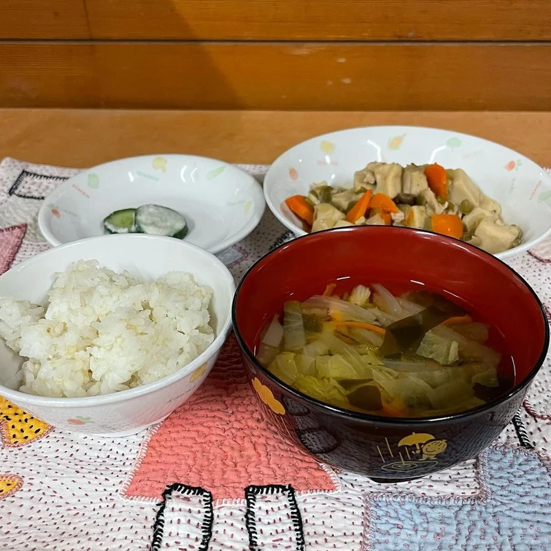 神田保育園のある日の手づくり給食。メインは、高野豆腐の含め煮です。