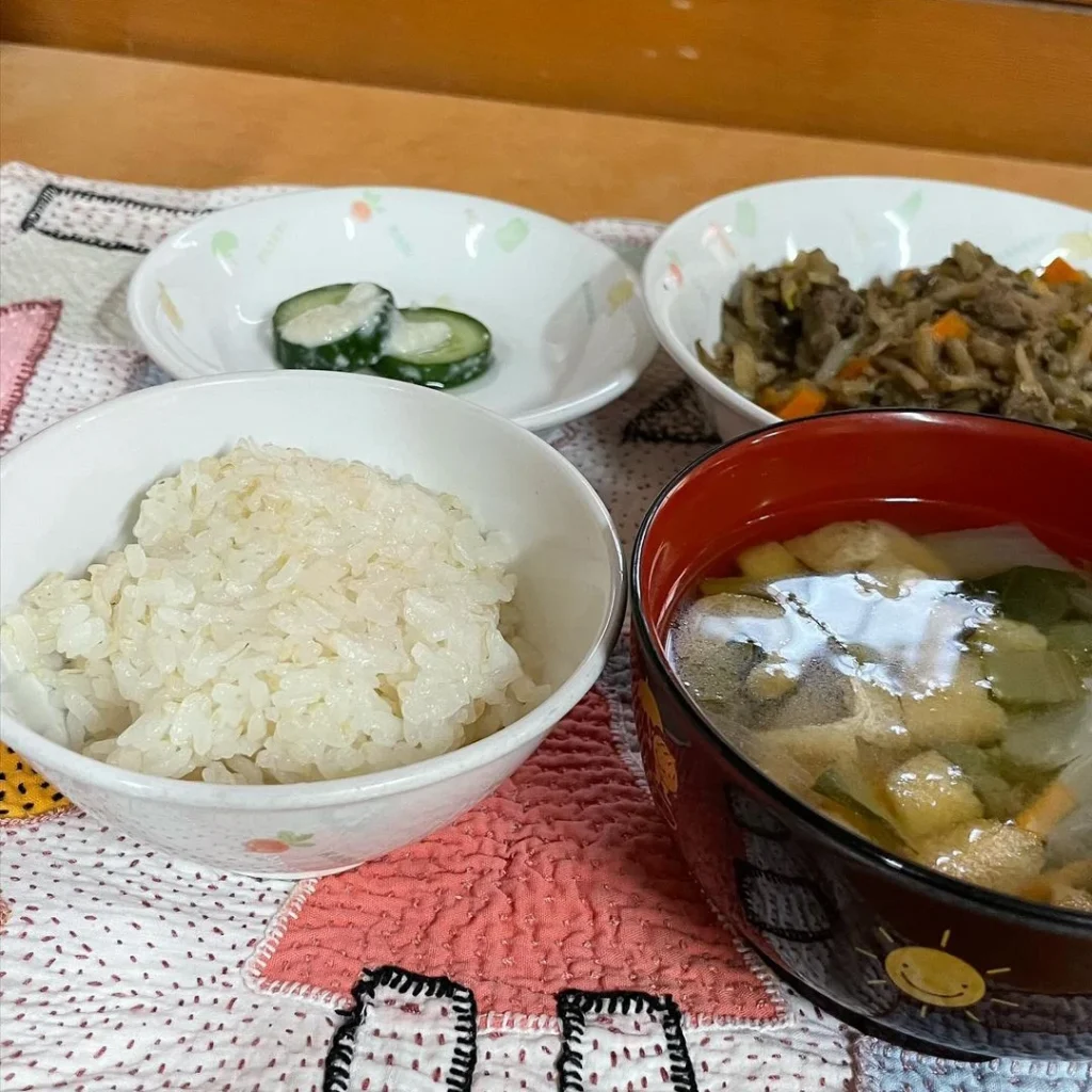 神田保育園のある日の手づくり給食。 メインは、牛肉と牛蒡のしぐれ煮です。