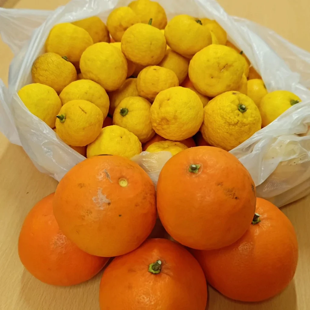保護者の方から沢山の柚子とオレンジを頂きました。