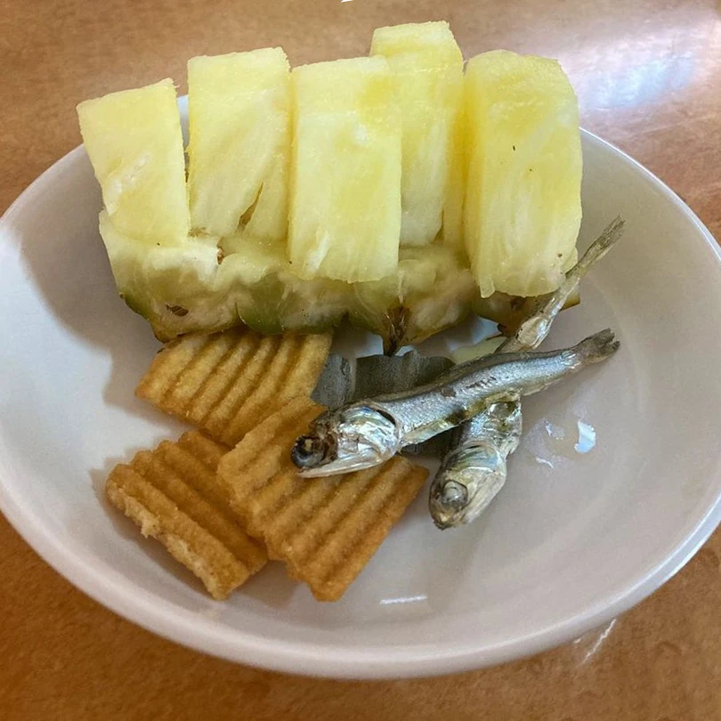 おやつにパイナップル🍍切っているときから甘い香りがキッチンいっぱいに!