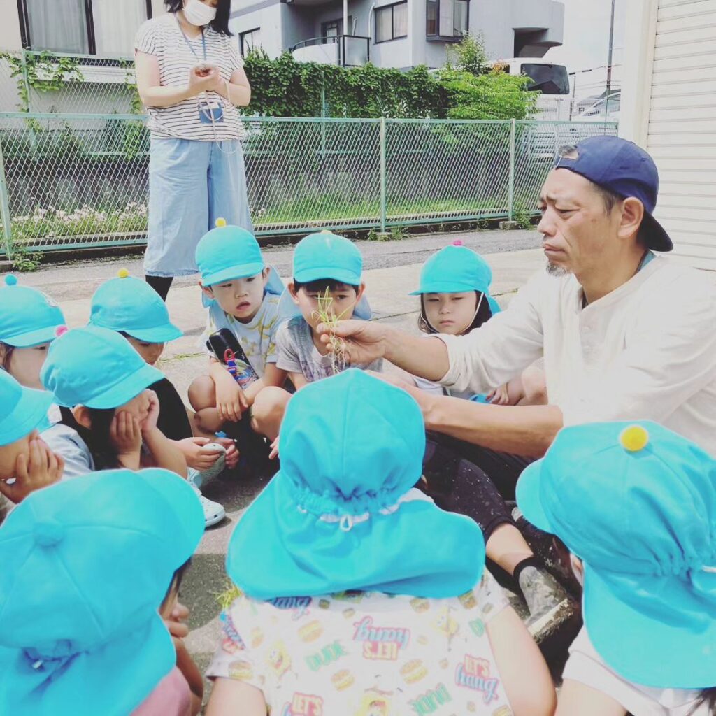 あかちゃんから育てていたお米のあかちゃんを田んぼに植えました。