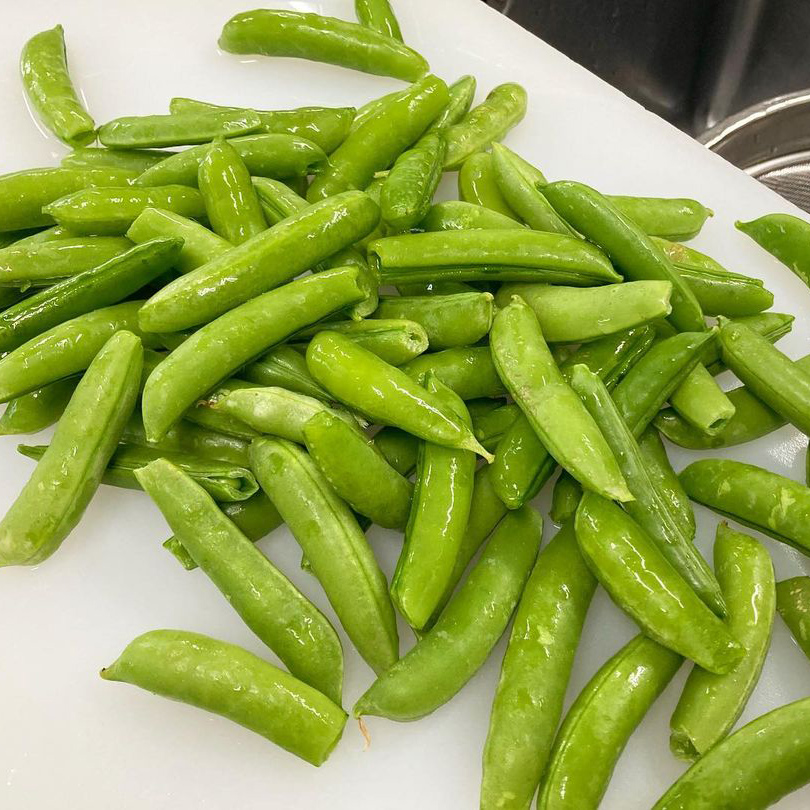 豆乳コーンクリームシチューに畑のスナップエンドウを入れました☘️